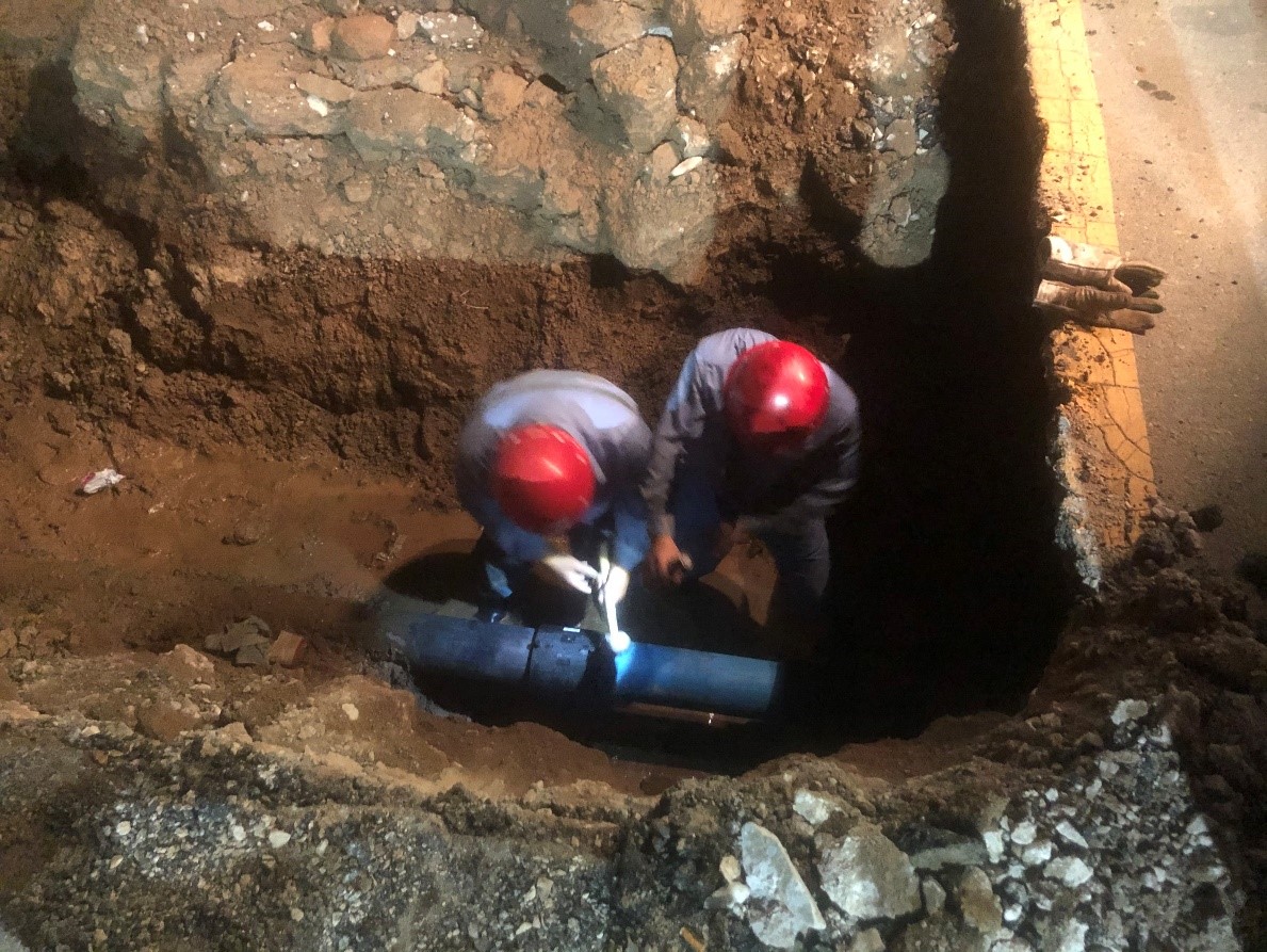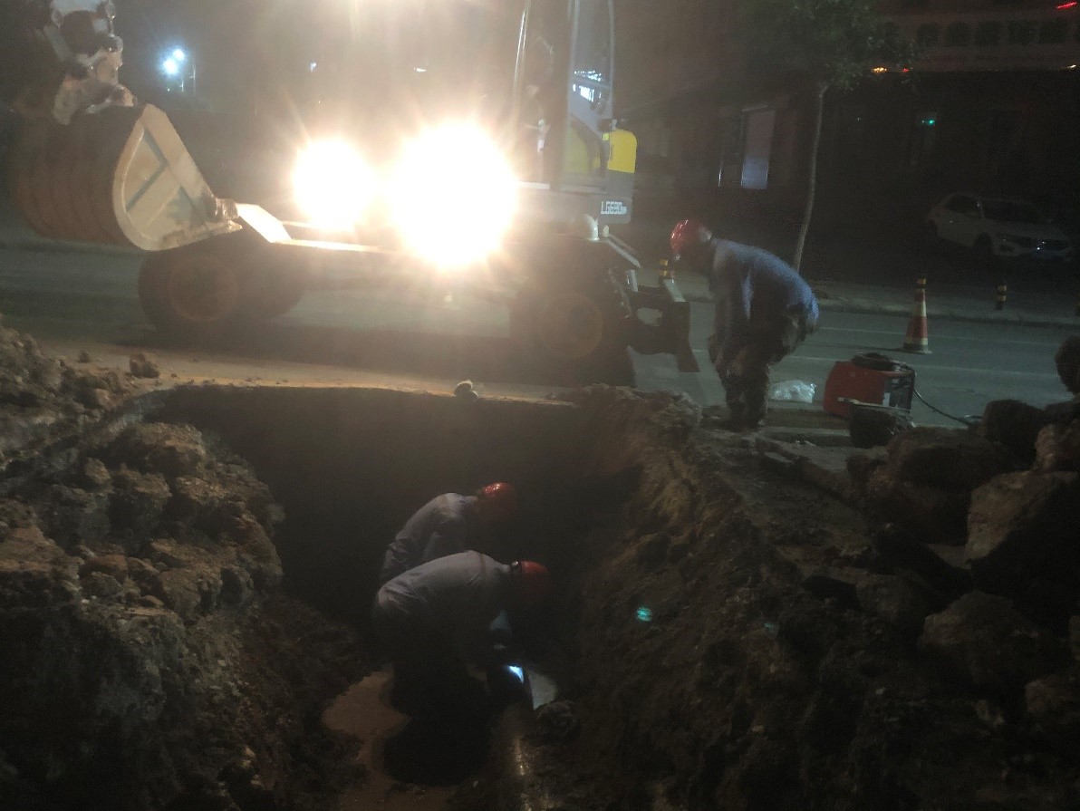 2020年7月6日14時許,在排查過程中發(fā)現(xiàn)紅星街處供水管線破裂,為了不影響高考期間供水,我公司立即組織人員搶修,17時完成搶修工作,恢復正常供水。20時左右,又有市民反映西山路處有漏水情況,我公司馬上組織人員檢查,最后發(fā)現(xiàn)西山路處一分支管線破裂漏水,為了保障周邊兩個小區(qū)的用水,我公司立即維修,23時完成了維修,保障了周邊小區(qū)高考期間的安全供水。